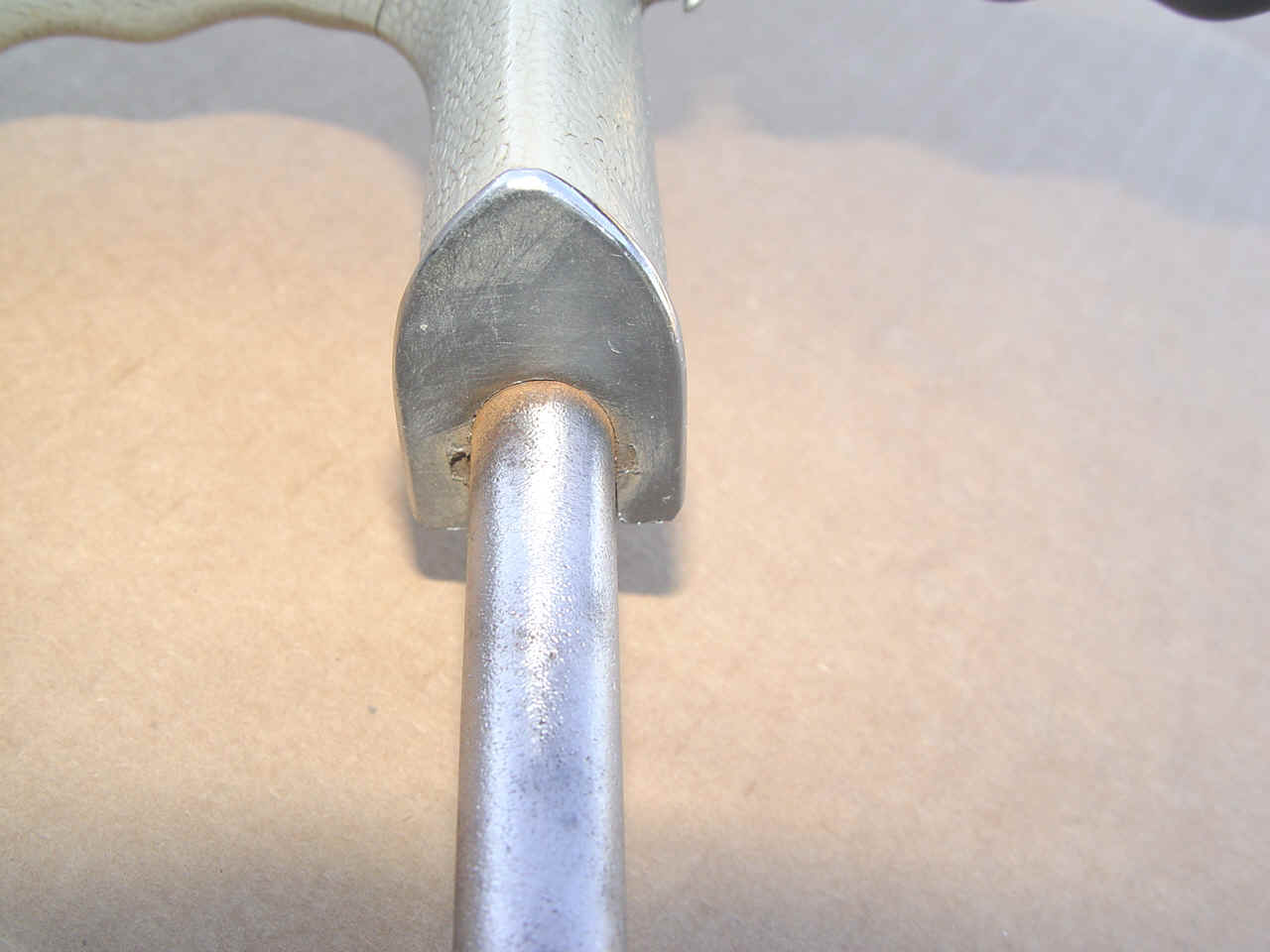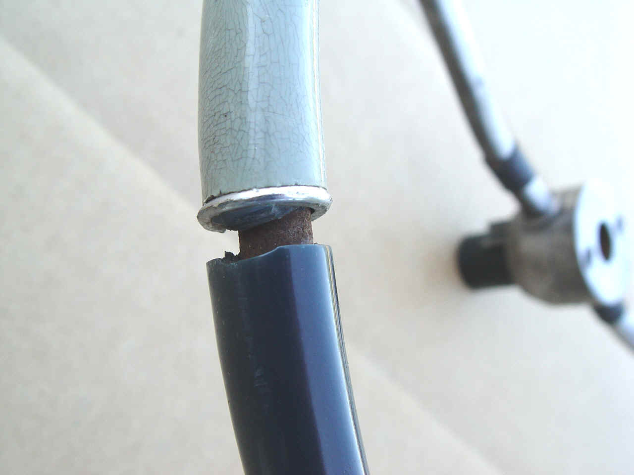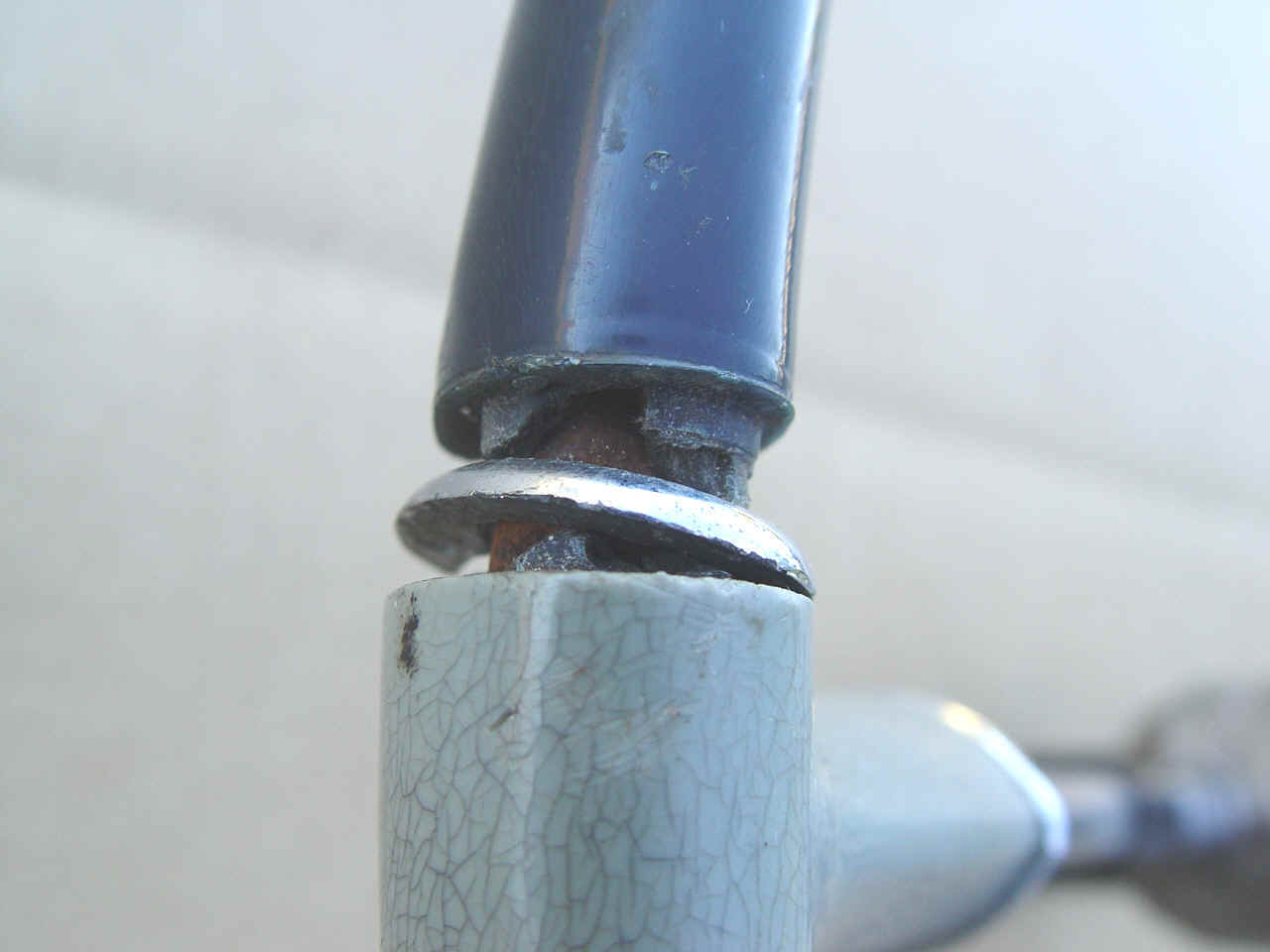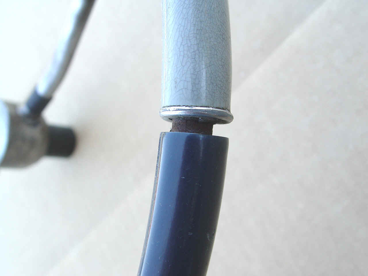 A very usable steering wheel. Feels very smooth, no loose pieces. Could use some filler where the dark blue has shrunk away from the chrome rings. Can be painted with polyeruthane paint per your requirements. As you can see, our camera can magnify any little flaws we found.