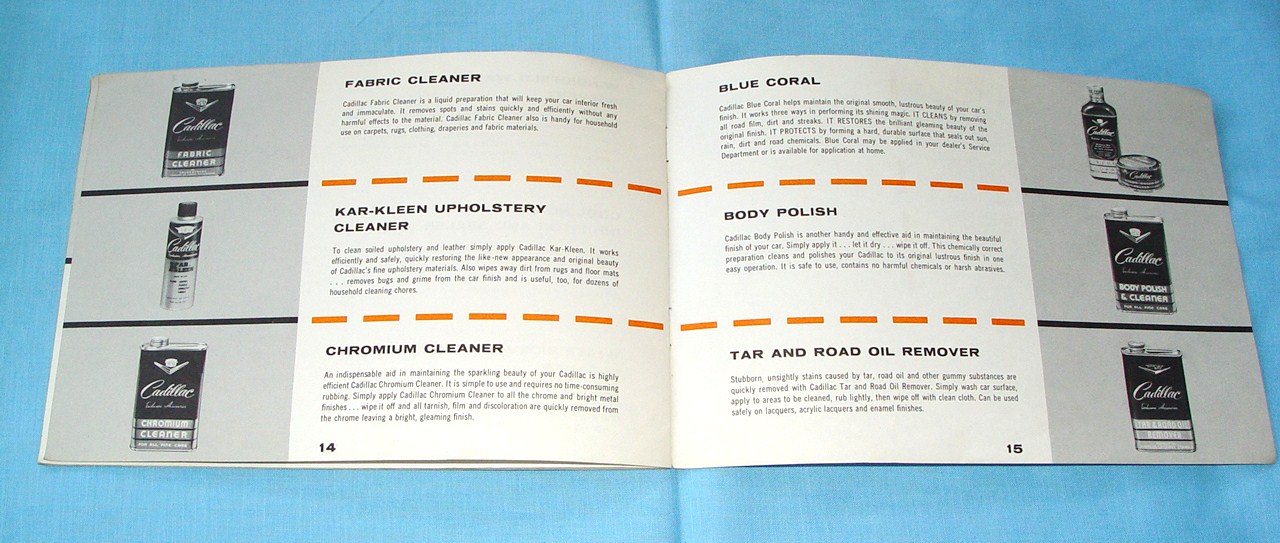 Original Cadillac accessories manual that would be in the owners manual packet when you purchased a new Cadillac. Nice lightly used condition. 16 Pages of accessories and Cadillac cleaners, polish and etc...