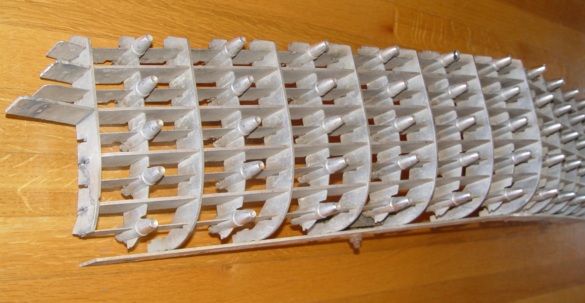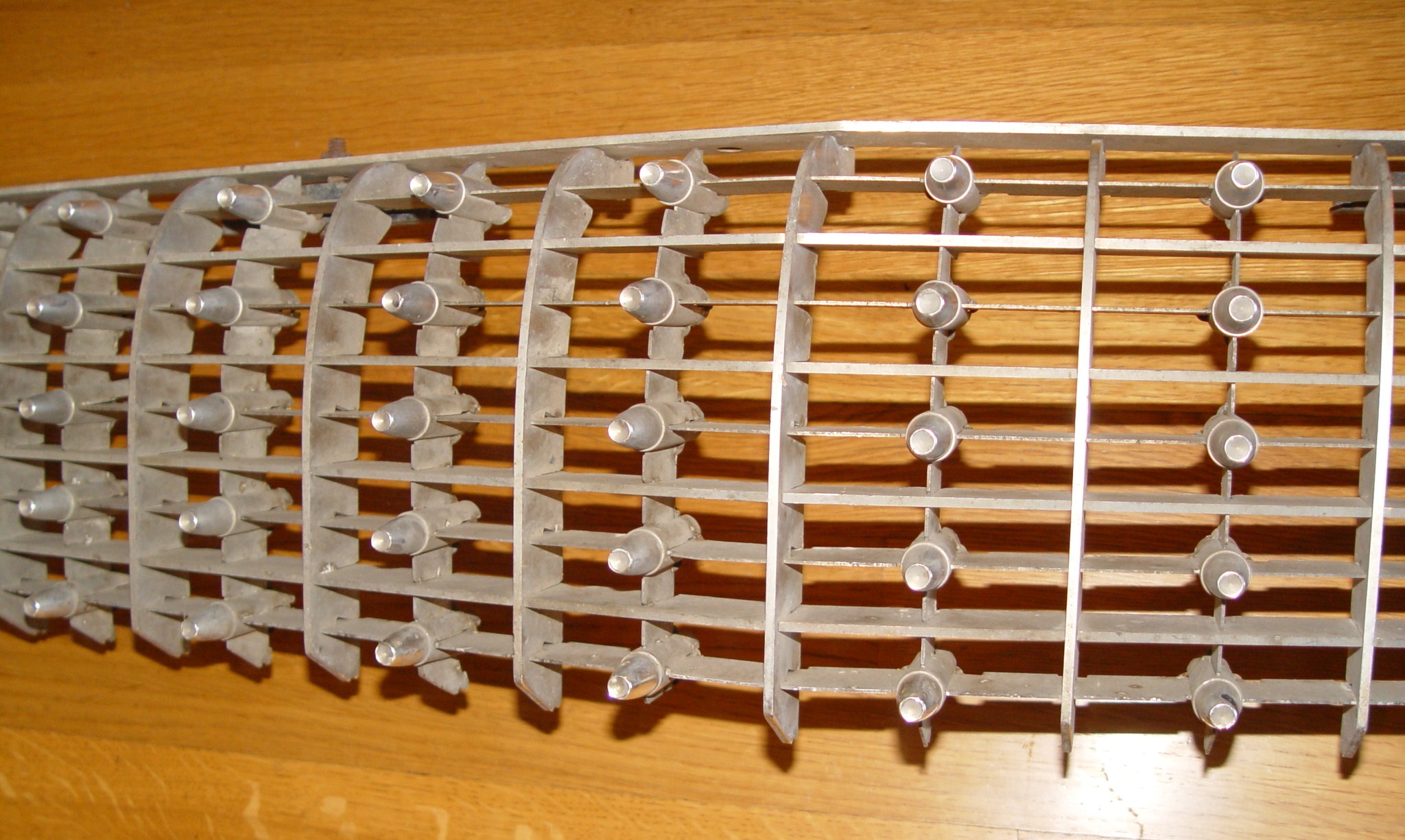 dbaer's has several 1960 main grills. This is, by far, the nicest one. There is very little discolorations, black specks, etc... All of the aluminum bars and bullets look good. After a thorough cleaning it will display very nice on your car. It's always very difficult to find these in such nice condition. The expert restorer charges $1,900.00 for these grills restored to absolute showpiece level