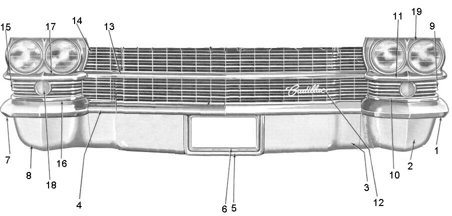 | 11. Grill center bar left extension ...(below headlights) | -- | 75.00 | 95.00 | 125.00 | 150.00 | ||||||||||||||||||||||||||||||||||||||||||||||||