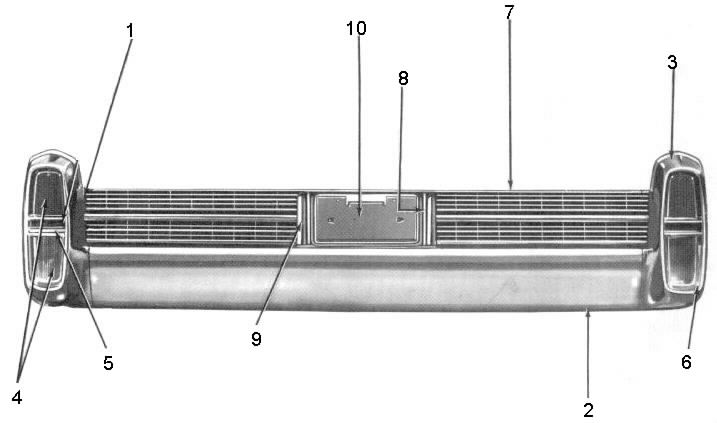 Back-up light lens center cross bar/reflector -- -- -- 35.00 45.00 Back up and brake light lamp housing -- -- -- 55.00 75.00 Rear bumper end aluminum escution -- -- 75.00 95.00 125.00 License plate light lens .......(each) -- -- -- 35.00 45.00 License plate light lens chrome housing ........(each) -- -- -- -- 38.00 Fillers