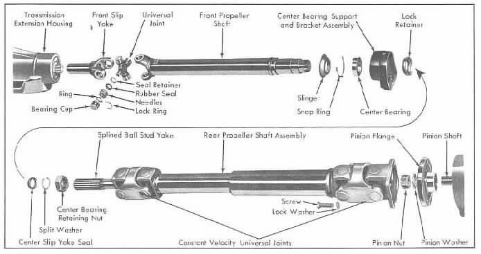 Drive line rear half ........(Series-62, deVille and 60-Special) -- -- -- -- 125.00 Drive line center support and bearing .....(price does not -- -- -- -- 75.00 .......include $35.00 core charge) Picture of drive shaft assembly If a part doesn't have a price filled in yet, It doesn't mean we don't have that item.