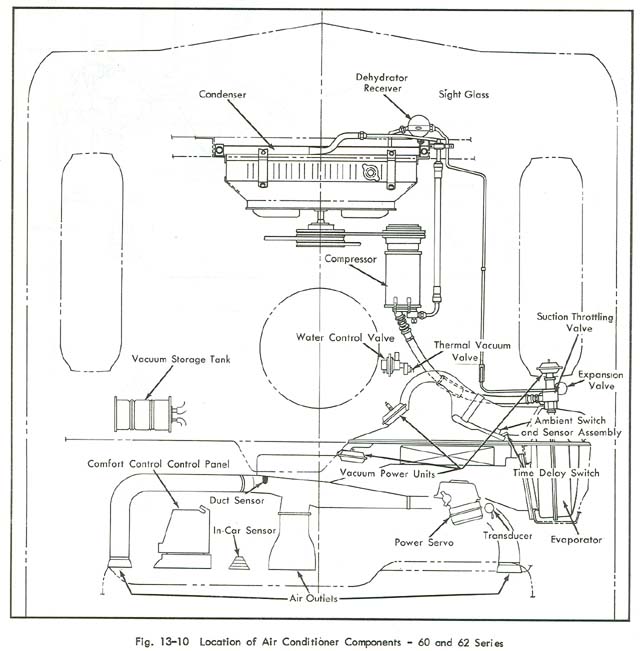 Compressor with clutch and pulley 125.00 Climate control head ..........($35.00 core charge additional) -- -- -- -- 150.00 Climate control power servo ........($35.00 core charge -- -- -- -- 125.00 ..........additional) Transducer -- -- -- -- 55.00 Mode door vacuum power unit -- -- -- -- 55.00 20%-100% vacuum power unit -- -- -- -- 55.00 Heater water control valve -- -- - -- 55.00 Climate control temperature sensor -- -- -- -- 25.00 Blower motor -- -- -- -- 55.00 Illustration of climate control system Twilight sentinel - Auto dimming