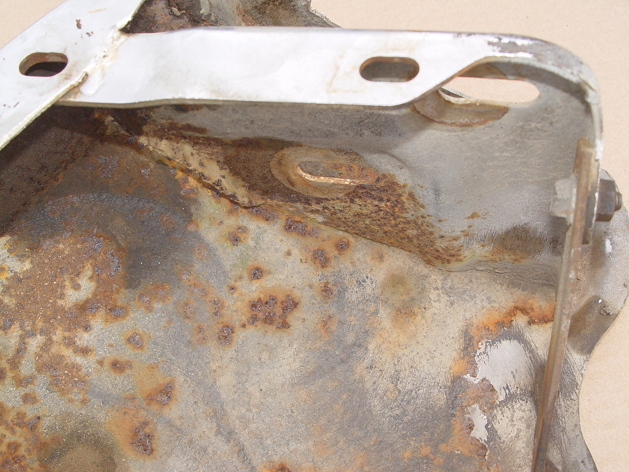Down low where it rolls under, almost horizontal, is a small rust through hole. 3/8 inch diameter, so it hardly shows.