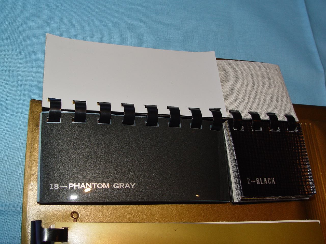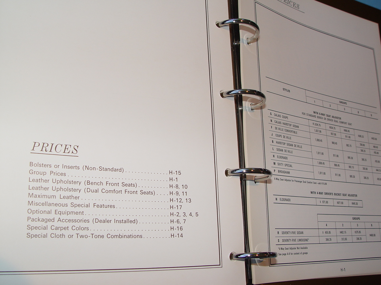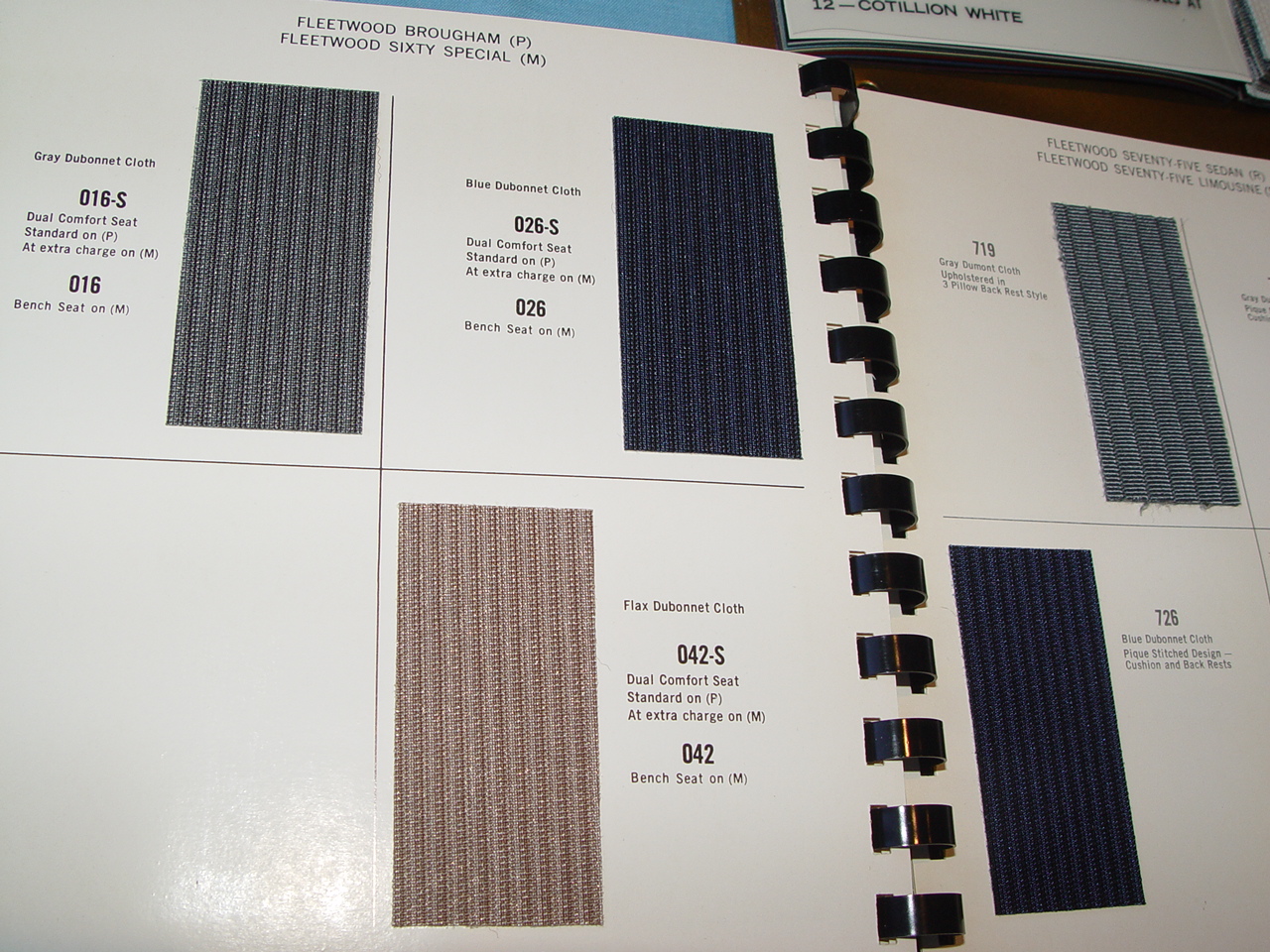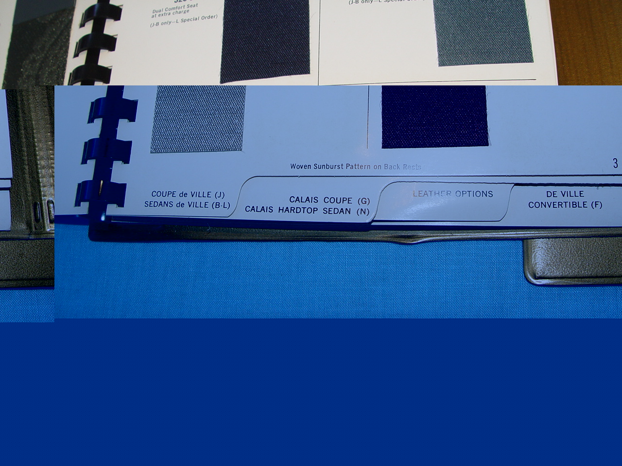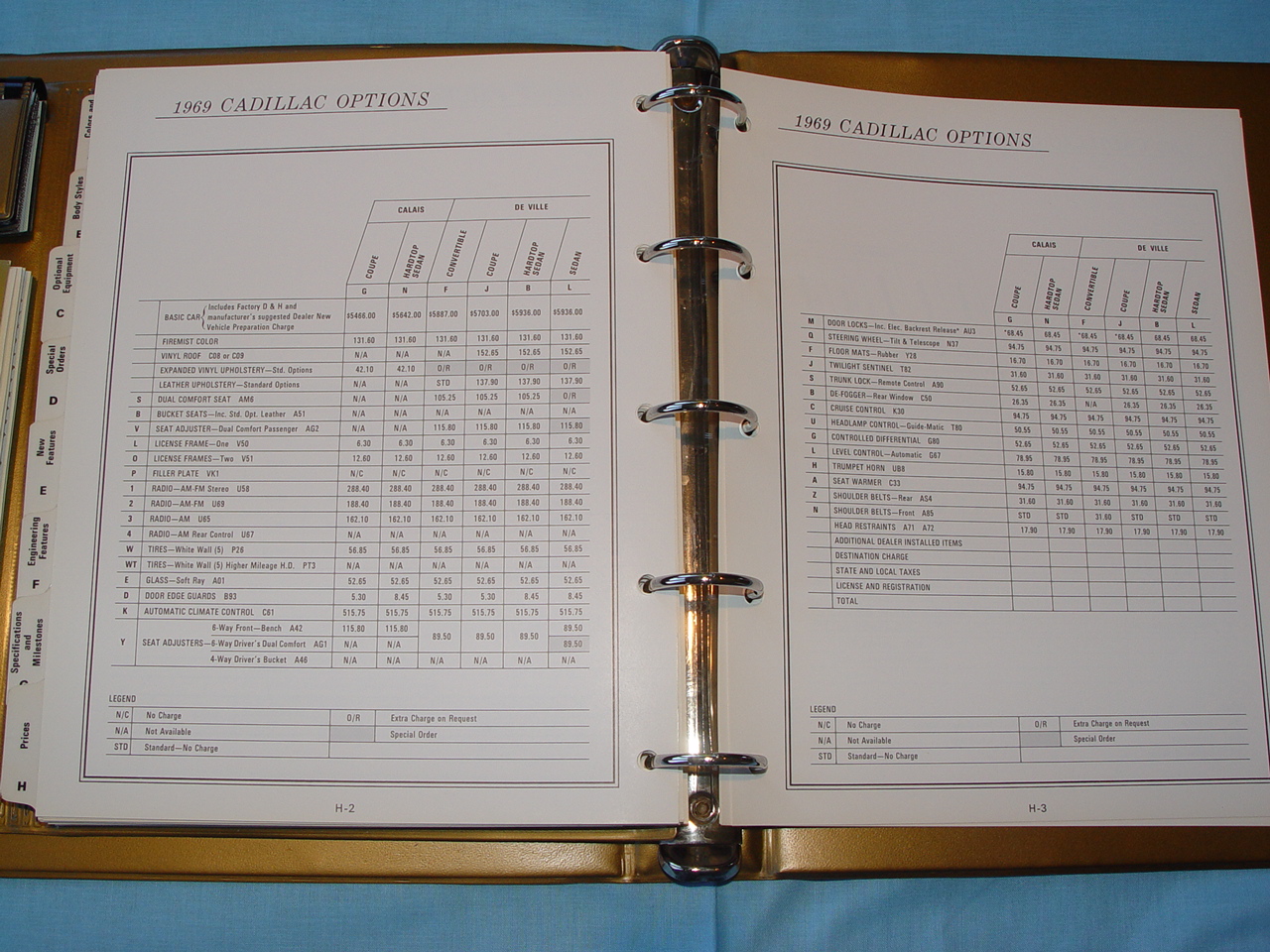 This is THE Cadillac Salesman's complete data book. Includes all information about the new 1969 Cadillacs plus the full exterior color samples and interior upholstery samples. Data book has 142 pages of which 12 are fold outs. Exterior samples: Includes 21 exterior paint colors, 6 vinyl top colors which are Elk grain material and 5 convertible top colors. Interior samples: including Ostrich grain, Dubonnet cloth, Devereaux cloth and other samples. This is from a collection that was owned by a district sales manager for Cadillac Motor Car Division. Brand new, it doesn't look like it has ever been used.