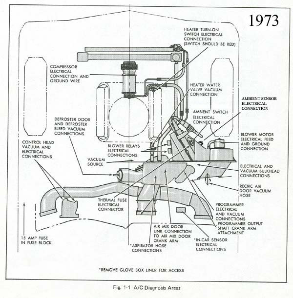 1. Condenser -- -- $65.00 2. Heater turn on switch ..........(should be red) -- -- 25.00 4. Discharge hose -- -- 28.00 5. Liquid hose -- -- 35.00 6. Suction hose -- -- 38.00 7. Receiver, dehydrator -- -- 38.00 8. Evaporator core -- -- 55.00 9. Ambient sensor -- -- 30.00 10. Ambient switch -- -- 35.00 11. Blower motor -- -- 45.00 13. Vacuum motor ........(element) -- -- 35.00 14. Programmer 71'-72'.........(price does not include $35.00 core charge) -- -- 195.00 14. Programmer 73'-78'.........(price does not include $35.00 core charge) -- -- 150.00 15. In car sensor -- -- 20.00 16. Heater core -- -- 55.00 17. Control head .........(price does not include $35.00 core charge) -- -- 100.00 18. Vacuum motor -- -- 35.00 19. Vacuum motor -- -- 35.00 20. Auto relay -- -- 28.00 21. Heater valve control -- -- 35.00 22. Low relay -- -- 28.00 24. A/C compressor with clutch and pulley -- -- 95.00 Defroster mode flapper doors ......(difficult to remove)> -- -- 87.00 Twilight sentinel (T-82) - Auto dimming (T-80)