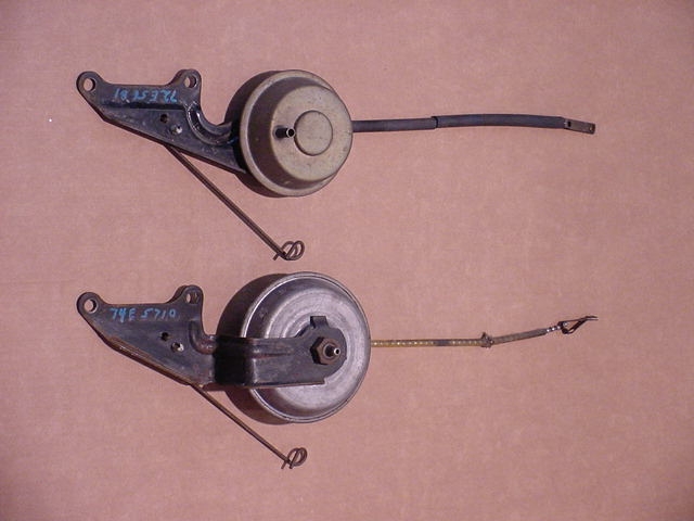 1. Turn signal arm with cruise button and wire ......(state color) -- -- $55.00 3. Vacuum release valve assembly -- -- 22.00 5. Stop light switch -- -- 22.00 8. Dash switch and wire harness -- -- 58.00 9. Dash switch escution -- -- 20.00 10. Cruise transducer ......(main controller) -- -- 125.00 17-19. Control chain -- -- 22.00 21. Speedometer cable ........(transducer to speedometer head) -- -- 32.00 23. Speedometer cable ........(transducer to transmission) -- -- 35.00 24. Power unit .......(servo) -- -- 58.00 Picture of early (top) or late (bottom) style power unit -- Cruise hold terminal resistance wire ........(should read 40 ohms) -- -- 35.00 Illustration for cruise system Ride leveling system