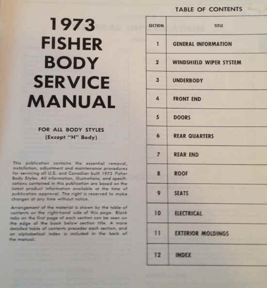 1973 Cadillac Shop and Fisher Body Service Manuals