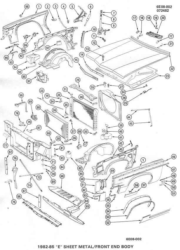 | Illustration of '82-85 front sheet metal | |||||||||