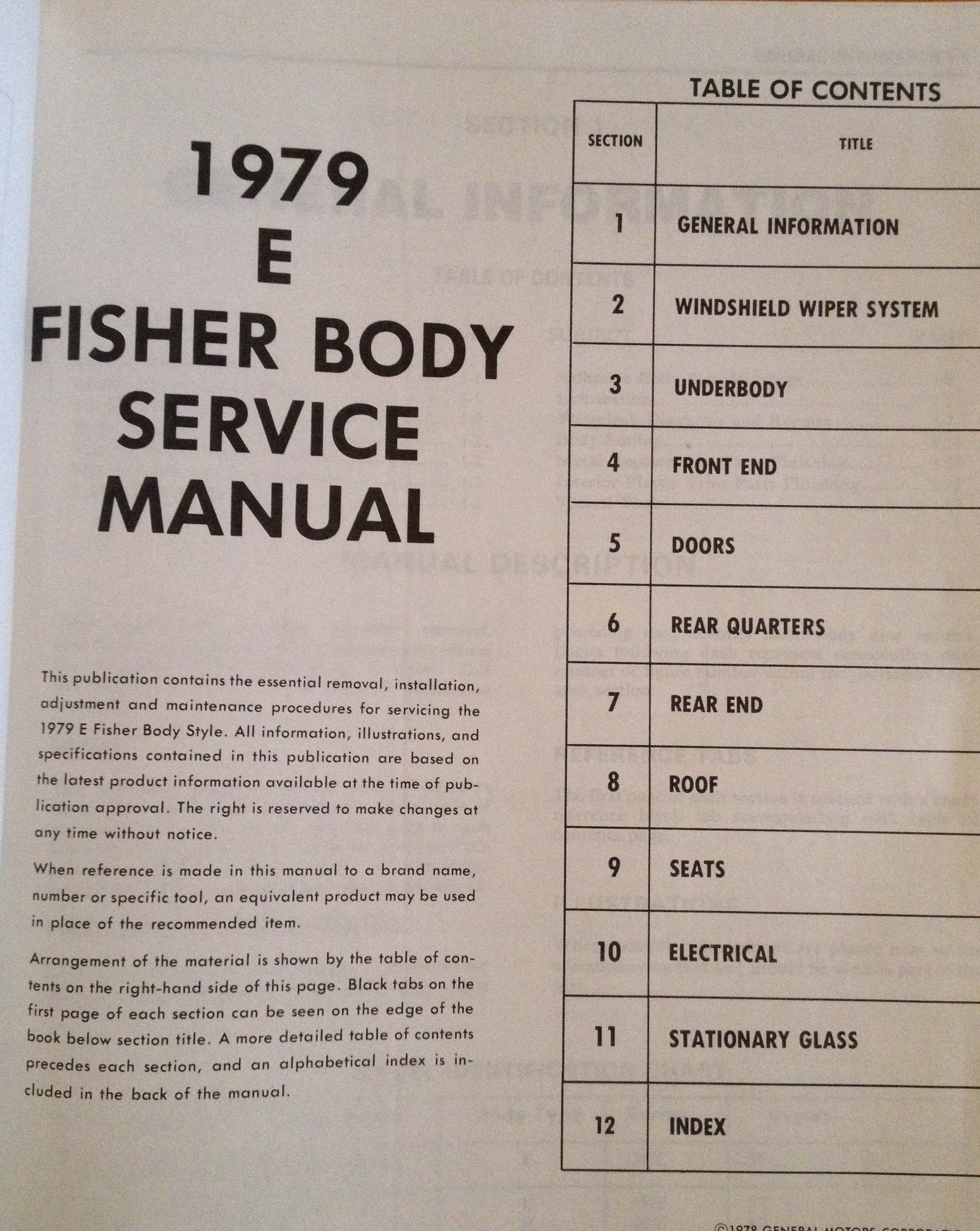 1979 Service and Eldorado Fisher Body Service Manuals